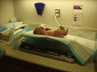 In addition to his heart rate dropping, Nixon wasn't getting enough oxygen so they put me on oxygen to help him out. They also had to place a heart rate monitor on his head while he was still in me to get a better reading. In addition to all that, the little stinker was facing backwards so Dr. Lovell had to reach in and try and turn him so his face was facing the right way AND he also had his first poop inside and there was meconium in the amniotic fluid so as soon as he was born they needed the NICU pediatrician to whisk him away to clean out all his airways so he didn't inhale that mess and get an infection...Good Lord, this kid was already a drama queen! Due to all of this the Doctor mentioned that she might want to use forceps to get him out quickly and I thought, Oh No You Don't! So I just pushed with everything in my body. The Positive? He was out so fast the Doctor made me stop pushing because she wasn't ready. The Negative? Making your baby come fast means mama gets 2nd degree tearing. That's not recommended. Dr. Lovell was more than impressed with my pushing skills, I'll have to thank my Body Pump and Abs instructors!
