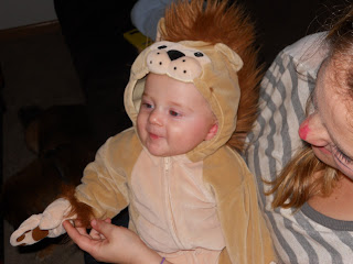 We left Gramma Anita's so that we could go Trick-or-Treating with Auntie Aimee and Cousin Kylee. It was a cold, gloomy, rainy day so we didn't get to go as far as Kylee would have liked. We still had fun and it was cute to see Nixon in his Lion gear again.